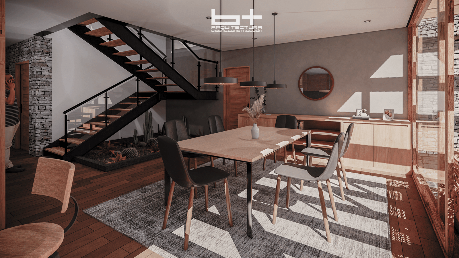 Además si notas en los muros con lo que se decidió construir utilizamos ladrillos expuestos y texturas naturales para ofrecer una estética rústica pero a la vez original que invita a ahondar en el alma o espíritu del espacio.